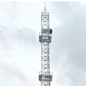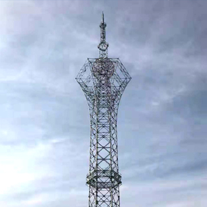 铁塔分类:按材质分为:角钢组装塔、钢管组装塔、锥管塔按作用类型分为:1、通讯塔通讯塔一般又称为通讯铁塔、通信铁塔,多建于地面、楼顶、山顶,塔架采用角钢材料,辅以钢板材料和钢管材料组成,塔架各构件之间采用螺栓连接,全部塔架构件在加工完毕后经过热镀锌防腐处理。角钢铁塔由塔靴、塔身、避雷塔、避雷针、平台、爬梯、天线支架、馈线架及避雷引下线